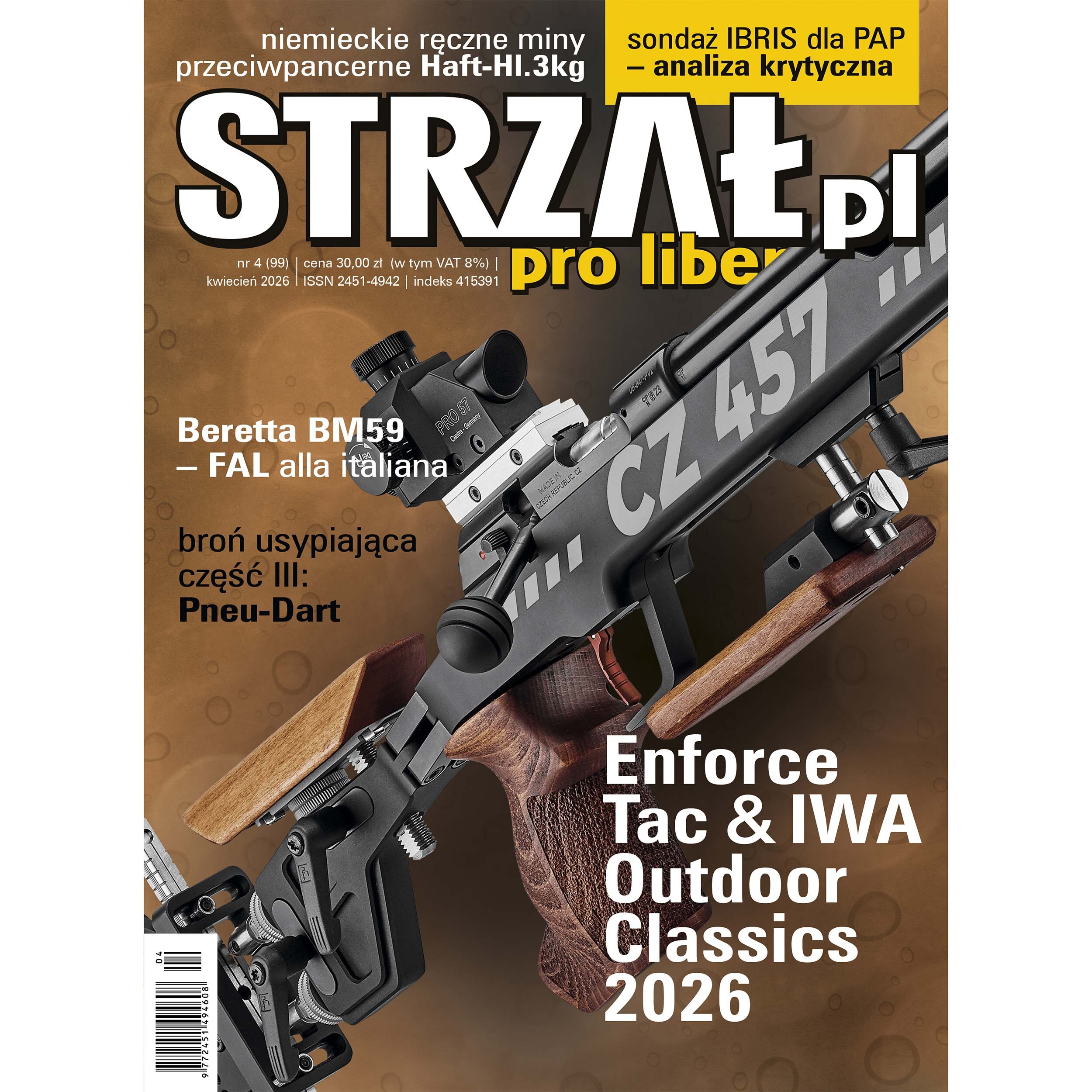 W tej kategorii umieściliśmy czasopisma wojskowe i magazyny militarne. Przedstawiamy Państwu miesięcznik “STRZAŁ pl pro libertate” publikowany przez Wydawnictwo Y. “STRZAŁ pl pro libertate” jest to polskie czasopismo, które ukazuje się od roku 1990. Miesięcznik na przełomie lat zmieniał swoje nazwy. Początkowo był znany pod tytułem “Pistolet”, następnie był “Colt” i “Broń”. Od 2002 roku magazyn ukazywał się pod nazwą “Strzał”, drukowany przez wydawnictwo Magnum - X. Od 2016 czasopismo nosi nazwę “STRZAŁ pl pro libertate”, która powstała dzięki skojarzeniu ze stroną internetową Strzał.pl.