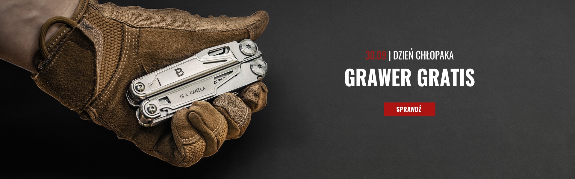 W Militaria.pl oferujemy bezpłatne grawerowanie wybranych produktów – scyzoryków, multitooli, latarek i innych akcesoriów. Możesz wygrawerować imię, datę, sentencję lub symbol, który na długo będzie przypominał o tej okazji. Darmowy grawer wykonujemy w dniach 24-30 września.