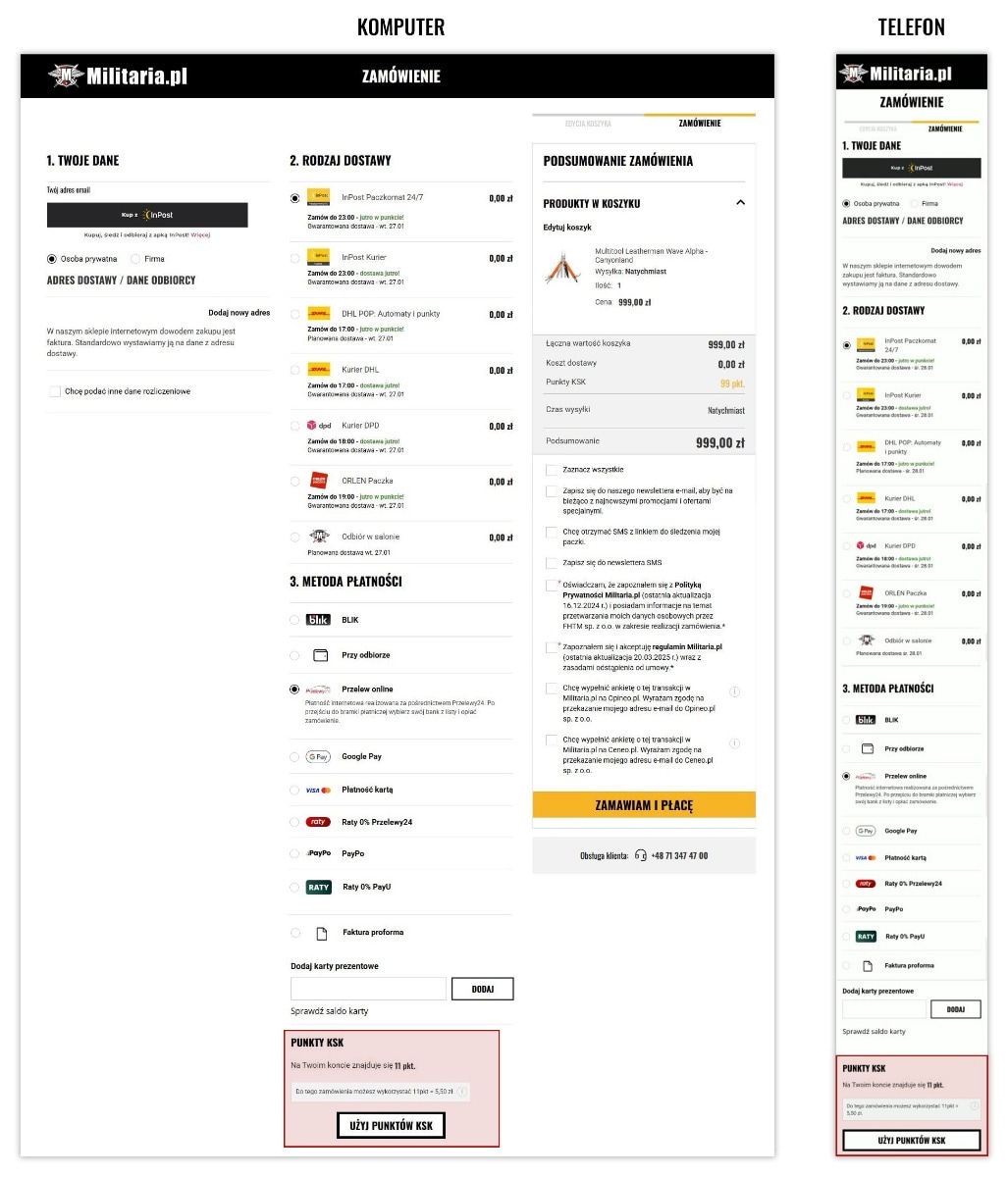 - ostateczną kwotę do zapłaty (wartość zamówienia pomniejszoną o punkty KSK).