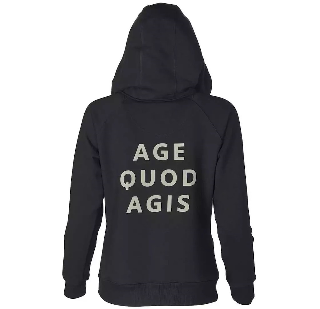 Model wyposażono w pojemną kieszeń typu kangurka, w której znajduje się zapinana na zamek przegroda pozwalająca na bezpieczne przenoszenie niezbędnych drobiazgów. Ponadto w modelu zastosowano dodatkowe kieszenie na bokach na niewielkie przedmioty. Na froncie bluzy umieszczono duże logo producenta, a na plecach napis "Age Quod Agis".