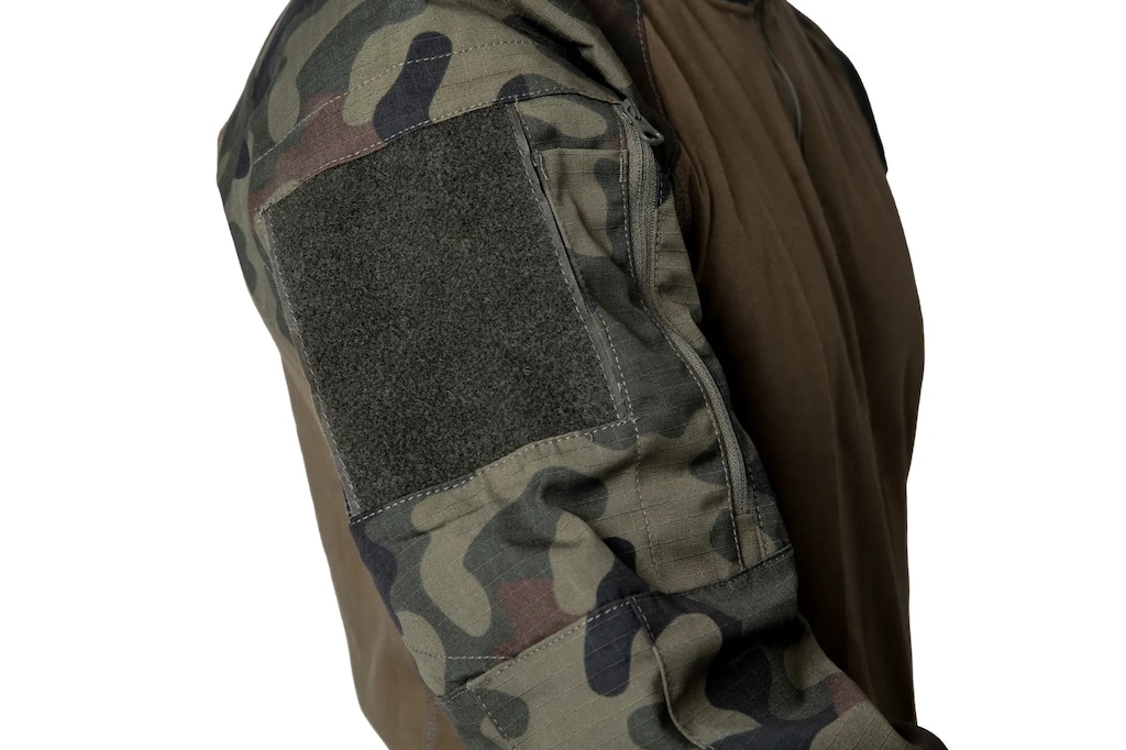 Bluza typu Combat Shirt w kamuflażu wz.93 Pantera PL Woodland. Zaprojektowana z myślą o użytkownikach działających w terenie, gdzie liczy się komfort i odporność na zużycie. Sprawdzi się zarówno zakładana pod kamizelkę taktyczną, jak i noszona samodzielnie. W modelu zastosowano zamki błyskawiczne renomowanej marki YKK.