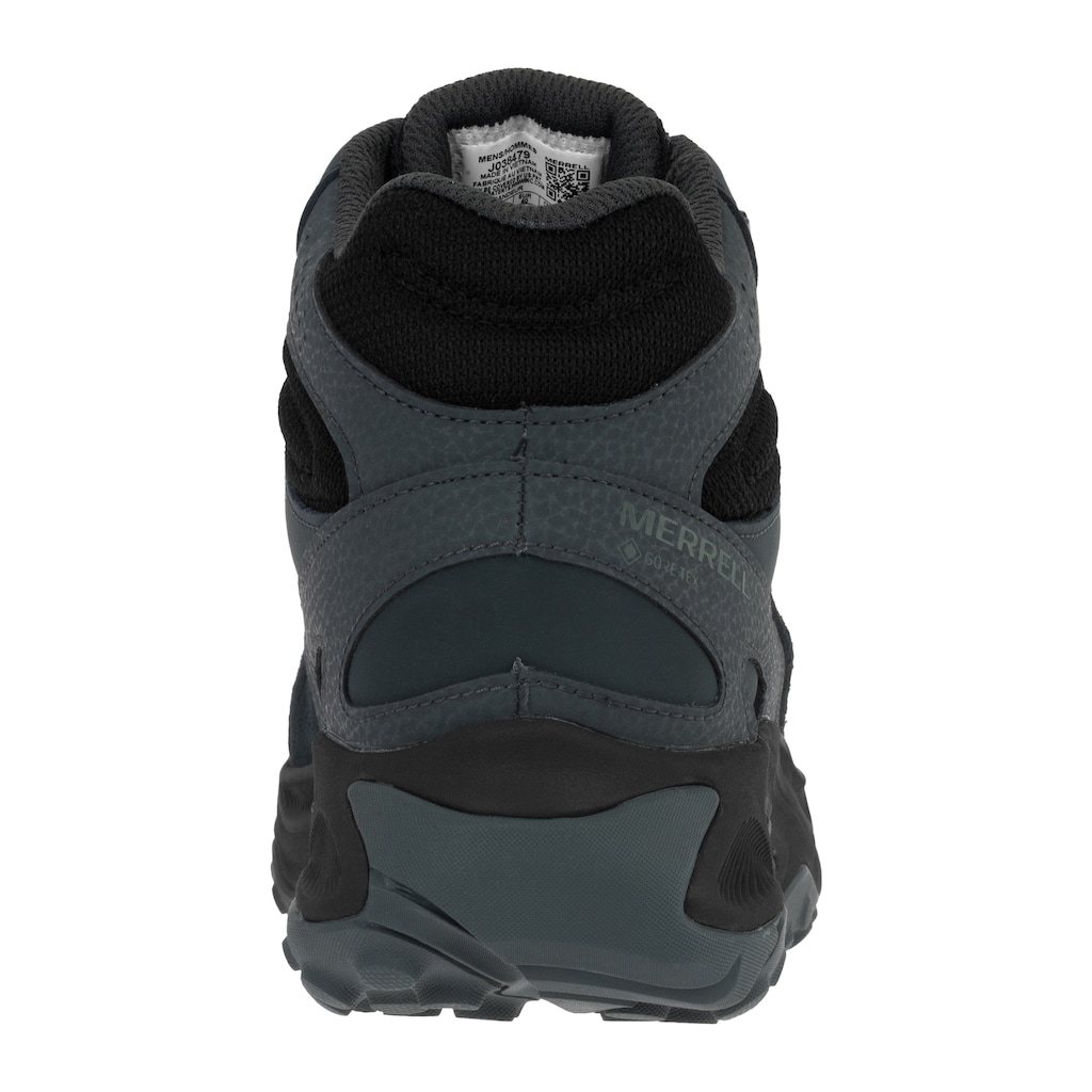 Buty trekkingowe w kolorze Black o lekkiej oraz wytrzymałej konstrukcji z wodoodporną i oddychającą membraną Gore-Tex. Podwyższona cholewka została wykonana z wysokiej jakości skóry zamszowej i wyposażona we wstawki z trwałej siatki syntetycznej.
