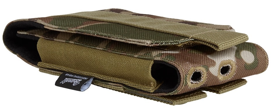 Na tyle pokrowca umieszczono dwie taśmy zgodne z systemem MOLLE. Dzięki temu futerał może zostać łatwo przymocowany do innego oporządzenia taktycznego np. plecaka. W dolnej części etui znajdują się dwa otwory do wejścia kablowego.
