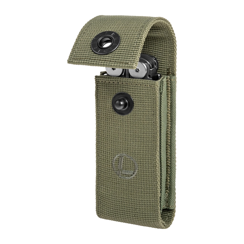 Etui zostało wykonane z nylonu balistycznego o gęstym splocie, który wykazuje wysoką odporność na przetarcia i uszkodzenia mechaniczne. Materiał zapewnia trwałość w trudnych warunkach i dobrze znosi intensywne użytkowanie. Klapa zapinana na zatrzask pozwala na szybki dostęp do multitoola, a jednocześnie skutecznie zabezpiecza go przed przypadkowym wypadnięciem.