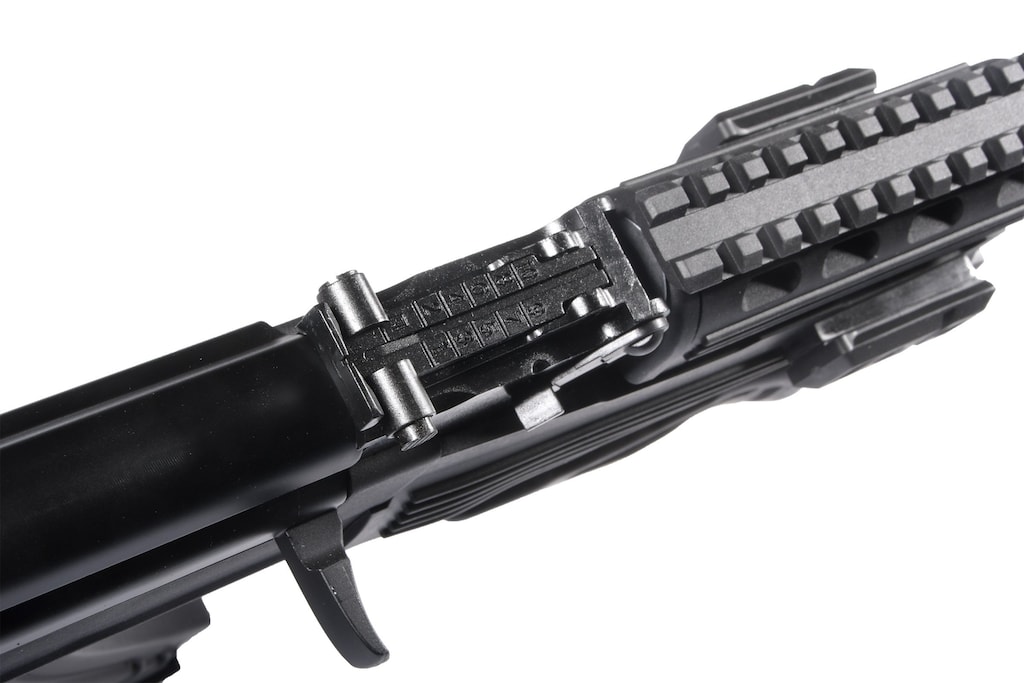 Replika została wyposażona w łoże z szynami RIS, które umożliwia montaż dodatkowego wyposażenia, takiego jak latarka, wskaźnik laserowy lub dodatkowy chwyt przedni. Dołączony chwyt taktyczny poprawia kontrolę nad bronią podczas prowadzenia ognia. Układ konstrukcyjny odpowiada rozwiązaniom znanym z platformy AK, co przekłada się na intuicyjną obsługę oraz łatwy dostęp do podstawowych manipulatorów.