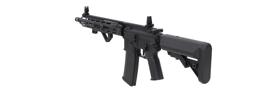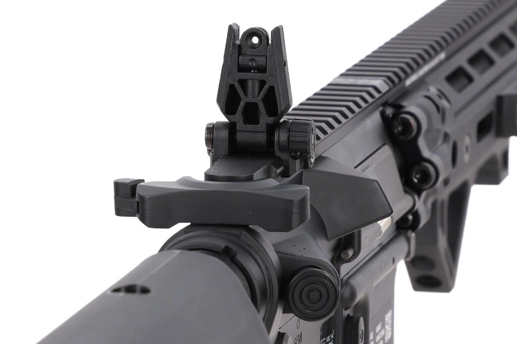 W replice zastosowano front RIS III z oznaczeniami Daniel Defense, kompatybilny zarówno z akcesoriami w standardzie RIS, jak i M-LOK, co zwiększa uniwersalność montażu osprzętu. Ponadto karabinek zaopatrzono także w składane przyrządy celownicze, a lufę zakończono urządzeniem wylotowym na gwincie 14 mm CCW, co pozwala na montaż tłumików lub innych akcesoriów.