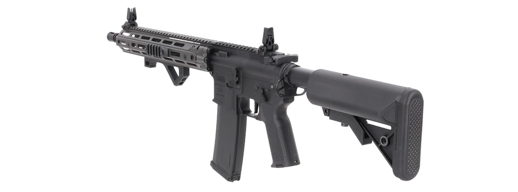 W replice zastosowano front RIS III z oznaczeniami Daniel Defense, kompatybilny zarówno z akcesoriami w standardzie RIS, jak i M-LOK, co zwiększa uniwersalność montażu osprzętu. Ponadto karabinek zaopatrzono także w składane przyrządy celownicze, a lufę zakończono urządzeniem wylotowym na gwincie 14 mm CCW, co pozwala na montaż tłumików lub innych akcesoriów.