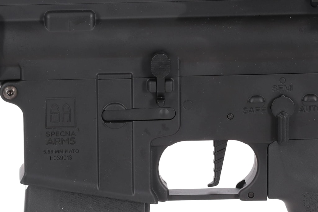 Elektryczna replika karabinka szturmowego z serii Edge wyposażona w zaawansowany elektroniczny układ sterujący Specna Arms HAL2 ETU. Konstrukcja łączy realistyczne wykonanie, nowoczesną elektronikę oraz praktyczne rozwiązania, które docenią zarówno początkujący, jak i doświadczeni gracze. Na korpusie znajdują się oznaczenia Specna Arms i indywidualny numer seryjny.
