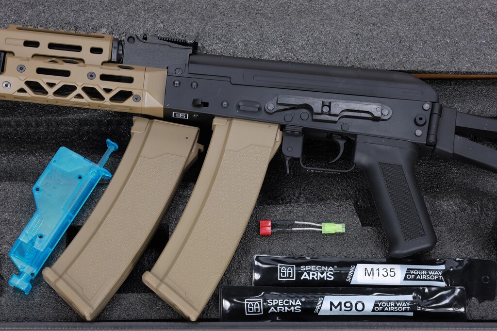 Elektryczna replika karabinka szturmowego z serii Prime wzorowana na popularnych konstrukcjach Kałasznikowa. Model zostal fabrycznie wyposażony w wysokiej klasy komponenty takie jak: łoże z nakładką rury gazowej CRC 1U004 od producenta KPYK, silnik bezszczotkowy Specna Arms Dark Matter High Speed 27-35K oraz moduł sterowania Gate Aster V3 umożliwiający dostosowanie ustawień replik do preferencji użytkownika.