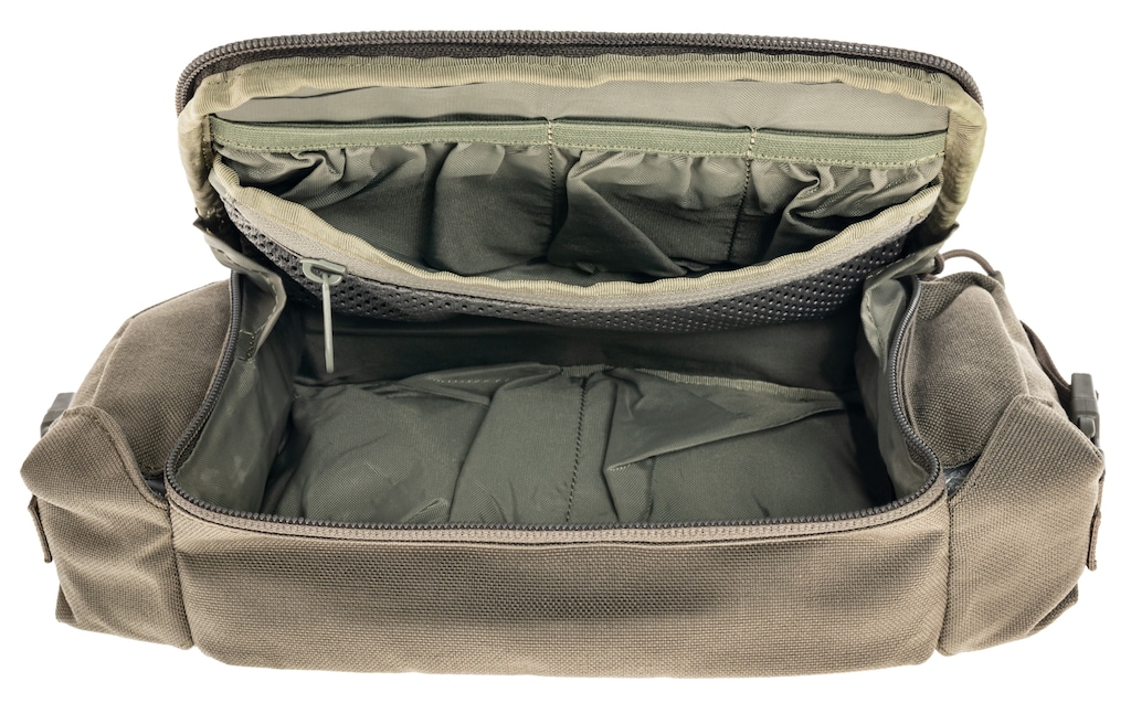 Kompaktowa kieszeń modułowa wykonana z odpornej na rozdarcia tkaniny. Pozwala uporządkować przenoszone akcesoria w wyposażeniu i zapewnia do nich łatwy dostęp. Dzięki przemyślanemu rozmieszczeniu 10 kieszeni i przegród różnej wielkości sprawdza się podczas wszelkich aktywności Outdoorowych.