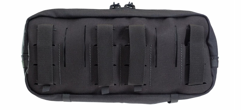 Tylny panel wyposażono w taśmy montażowe o szerokości 20 mm, umożliwiające pewne mocowanie do oporządzenia w standardzie MOLLE/PALS. Alternatywnie ładownicę można przewlec bezpośrednio przez pas o szerokości do 50 mm, co zapewnia różne konfiguracje przenoszenia. Cały front kieszeni pokryto taśmami PALS, dzięki czemu możliwe jest troczenie dodatkowych kieszeni lub ładownic. Na spodzie i bokach umieszczono cztery pętle, które pozwalają na podczepienie dodatkowego wyposażenia lub karabińczyków.