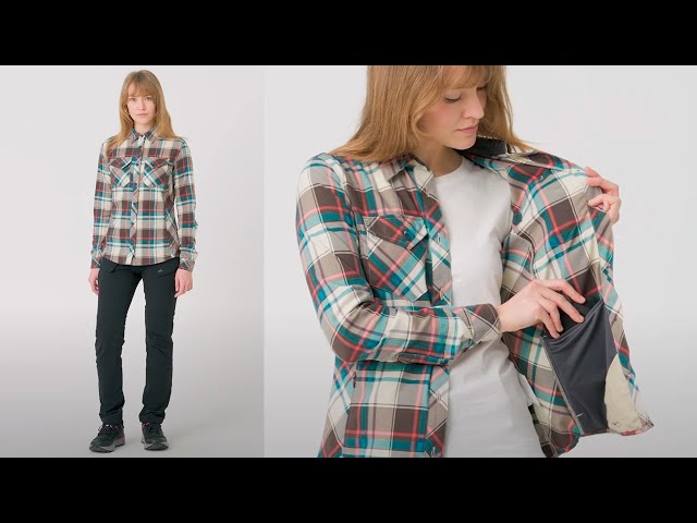 Damska koszula w kratę uszyta z materiału o gramaturze 155 g/m2, stanowiącego połączenie trwałego nylonu, poliestru oraz szybkoschnących i elastycznych włókien Sorona. Model uzyskał certyfikat Bluesign potwierdzający produkcję zgodną z normami ochrony środowiska i został wyposażony w solidne zamki błyskawiczne renomowanej marki YKK.