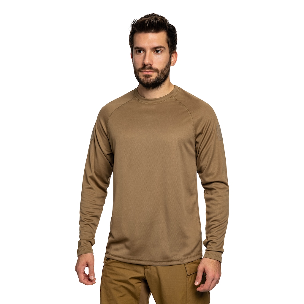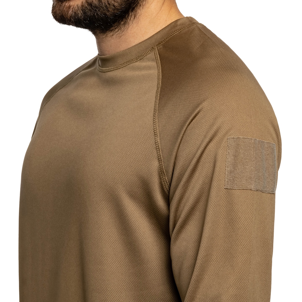 Koszulka z długim rękawem w kolorze Coyote, zaprojektowana z myślą o użytkownikach, którzy cenią komfort, swobodę ruchów i szybkie odprowadzanie wilgoci. Sprawdzi się zarówno podczas treningów czy działań taktycznych, jak i codziennego noszenia.