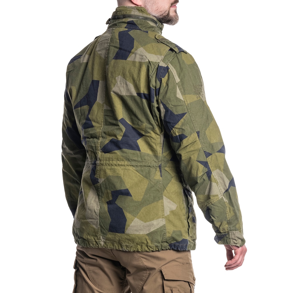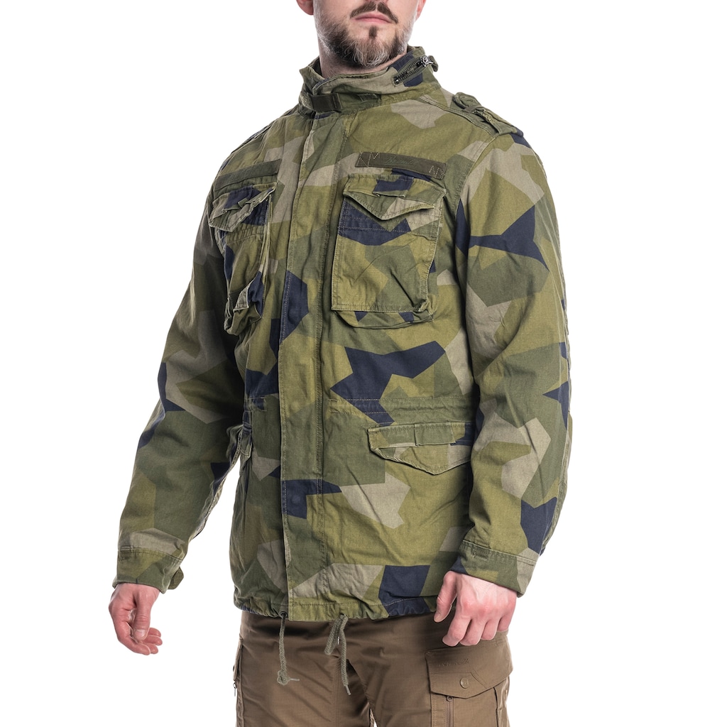 Całoroczna kurtka w kamuflażu Swedish Camo inspirowana klasycznym modelem amerykańskiej kurtki M65, uwielbianej na całym świecie za swoją funkcjonalność i wytrzymałość. Wykonana została z połączenia poliestru i bawełny oraz wyposażona w odpinaną podpinkę ocieplającą, kaptur chowany w wysokim kołnierzu oraz 4 praktyczne kieszenie. Wierzchnia bawełniana warstwa została fabrycznie postarzona, dzięki czemu uzyskano efekt sprania w stylu vintage.