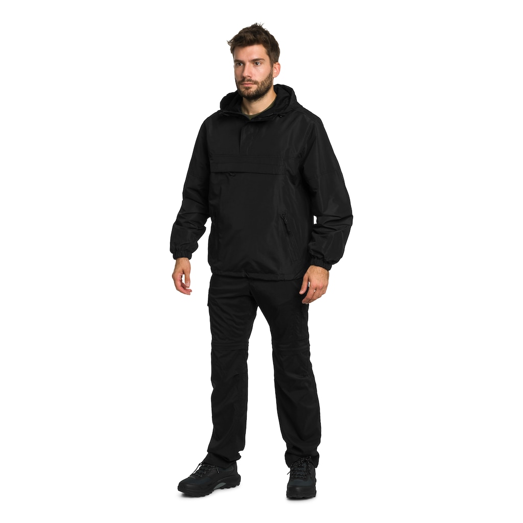 Kurtka typu wiatrówka w kolorze Black, wykonana z lekkiego, wiatro- i wodoodpornego poliestru, który cechuje się trwałością i odpornością na uszkodzenia mechaniczne. Siatkowa podszewka zapewnia dobrą oddychalność i komfort termiczny.