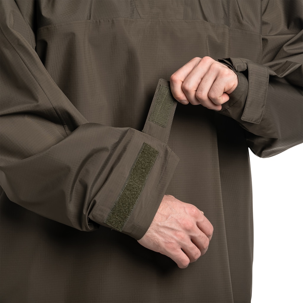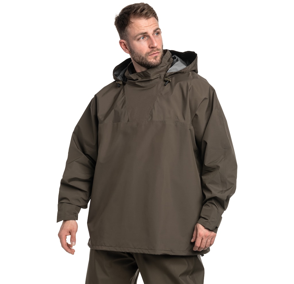 W modelu Carinthia Survival Rainsuit Jacket membranę Gore-Tex połączono bezpośrednio z tkaniną zewnętrzną z poliamidu, tworząc lekki laminat o zwartej strukturze. Taka konstrukcja ogranicza masę kurtki i umożliwia jej szybkie złożenie do kompaktowych rozmiarów. Kurtka pełni funkcję skutecznej bariery przeciwdeszczowej, zachowując jednocześnie wysoką oddychalność i odporność na uszkodzenia mechaniczne.