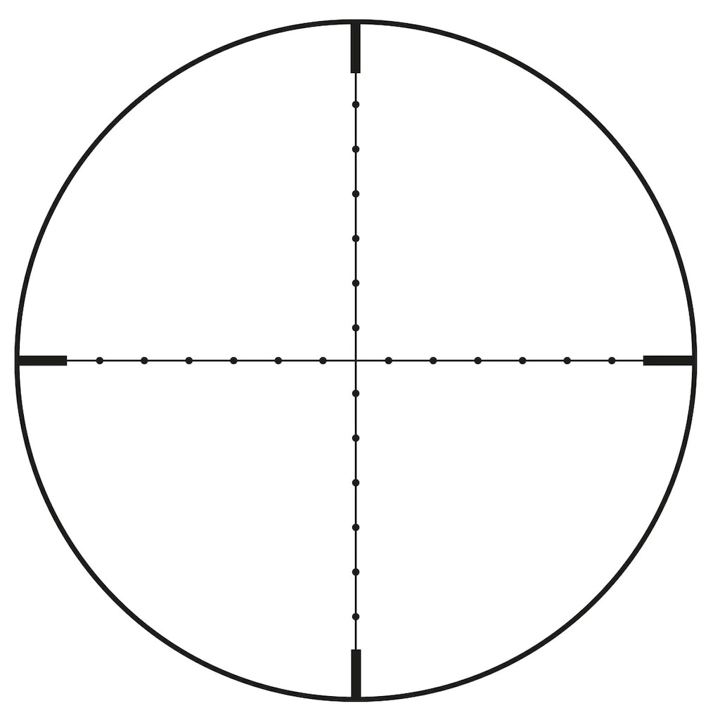Model wyposażono w siatkę celowniczą Mil-Dot umieszczoną w drugiej płaszczyźnie ogniskowej SFP (Second Focal Plane). Podświetlenie krzyża w kolorze czerwonym i zielonym zwiększa czytelność, poprawiając jego widoczność na tle zróżnicowanego otoczenia i przy ograniczonym oświetleniu. Krzyż regulowany jest zarówno w pionie, jak i w poziomie. Zakres regulacji w obu płaszczyznach wynosi 192 MOA, przy skoku o 1/4 MOA na każdy klik.