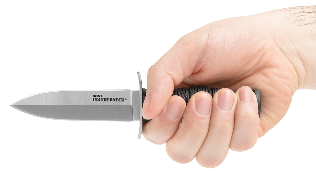 Kompaktowa wersja noża Cold Steel Leatherneck, inspirowanego klasycznymi nożami bojowymi US Marines. Model ze stałym ostrzem w konstrukcji Full Tang przeznaczony do zastosowań taktycznych i survivalowych. Głownię typu Dagger wykonano ze stali nierdzewnej 8Cr13MoV, która łączy odporność na korozję z łatwością ponownego ostrzenia. Krawędź tnącą wyprowadzono szlifem płaskim (Flat Grind) i wykończono metodą satynowania. WW komplecie znajduje się kabura w systemie Secure-Ex z otworami i przelotkami do wielopozycyjnego mocowania na pasie lub elementach ekwipunku.