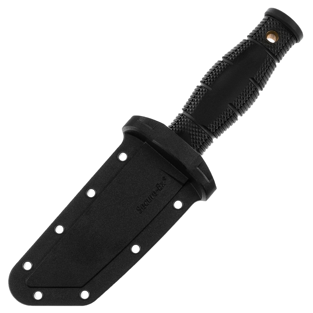 Kaburę wykonano w systemie Secure-Ex z tworzywa odpornego na czynniki zewnętrzne. Pochwa stabilnie utrzymuje nóż dzięki dopasowanemu wlotowi, co ogranicza ryzyko przypadkowego wypadnięcia. Liczne otwory i przelotki umożliwiają wielopozycyjne mocowanie do pasa lub innych elementów ekwipunku.