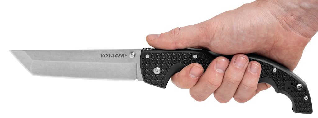 Jeden z klasyków Cold Steel, ulubiony nóż założyciela tej firmy. Wielu fanów noży powie, że to Espada XL jest królową wszystkich noży ColdSteel, ale wg mnie ten konkretny model voyagera stanowi godnego zawodnika do tego tytułu. Wygląd "na żywo" absolutnie zabójczy- raczej nie do pokazywania przy ludziach nieoswojonych z widokiem noża w przestrzeni publicznej. Kształt ostrza i ząbkowanie tworzy świetne połączenie gdy szukamy noża do cięcia miękkich materiałów i tkanin. Należy mieć na uwadze to, że czubek ostrza schodzi się do niemal igły, co w połączeniu z zębatym ostrzem ogranicza użyteczność noża w "bushcrafcie" lub pracach technicznych(ryzyko odłamania tych małych struktur przy kontakcie z drewnem lub innym podobnie twardymi materiałami). Minusem jest wykończenie/szlifowanie głównego elementu blokady TriAdLock, w miejscu kontaktu z ostrzem są "pasiaste" ślady po obróbce metalu które powodują słyszalne i wyczuwalne tarcie blokady o ostrze- trzeba samemu sobie to papierem ściernym doszlifować, żeby chodziło płynnie.