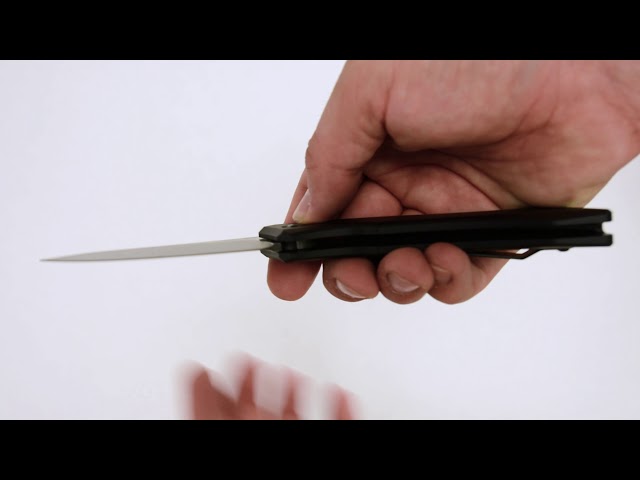 Nóż sprężynowy o łącznej długości 220 mm. Głownia o długości 95 mm i profilu Drop-Point wykonana została ze stali CPM 154, która charakteryzuje się odpornością na ścieranie oraz korozję. Okładziny rękojeści wykonano z lekkiego i wytrzymałego aluminium.