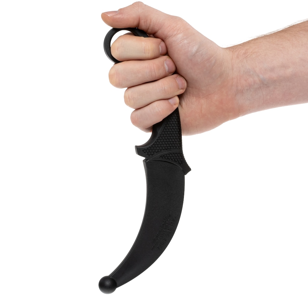 Największy dostępny na rynku nóż z tworzywa. Bardzo realistycznie wykonany. Dość sztywny i masywny. Przy treningu full contact obowiązkowy sprzęt ochronny( zwłaszcza oczu). Niezastąpiony jako pomoc naukowa na treningach.