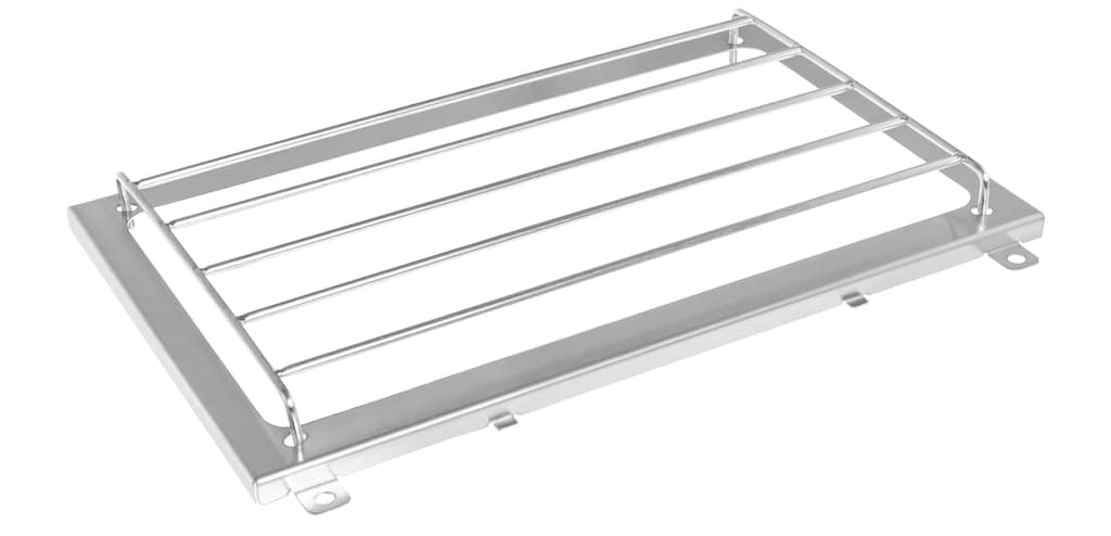 Nakładka grillowa została zaprojektowana z myślą o szybkim i prostym montażu. Wystarczy nałożyć ją na korpus pieca Fastfold i zabezpieczyć bocznymi zaczepami. Po zakończeniu grillowania panel można łatwo zdjąć, oczyścić i spakować do torby lub plecaka.