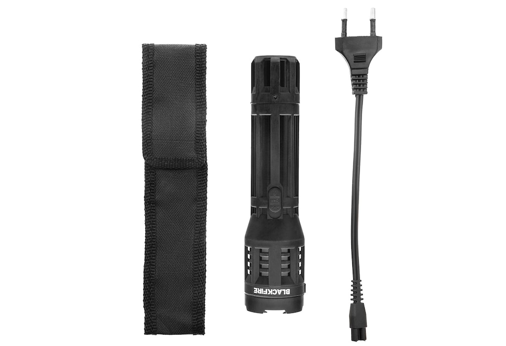 Kompaktowy, bardzo skuteczny paralizator Blackfire Typhoon z latarką diodową, zasilany wewnętrznym akumulatorem. Dzięki napięciu 1 miliona V paralizator wywołuje silny skurcz mięśni oraz ból u napastnika. Natężenie prądu poniżej 10 mA nie stanowi zagrożenia dla zdrowia i życia.