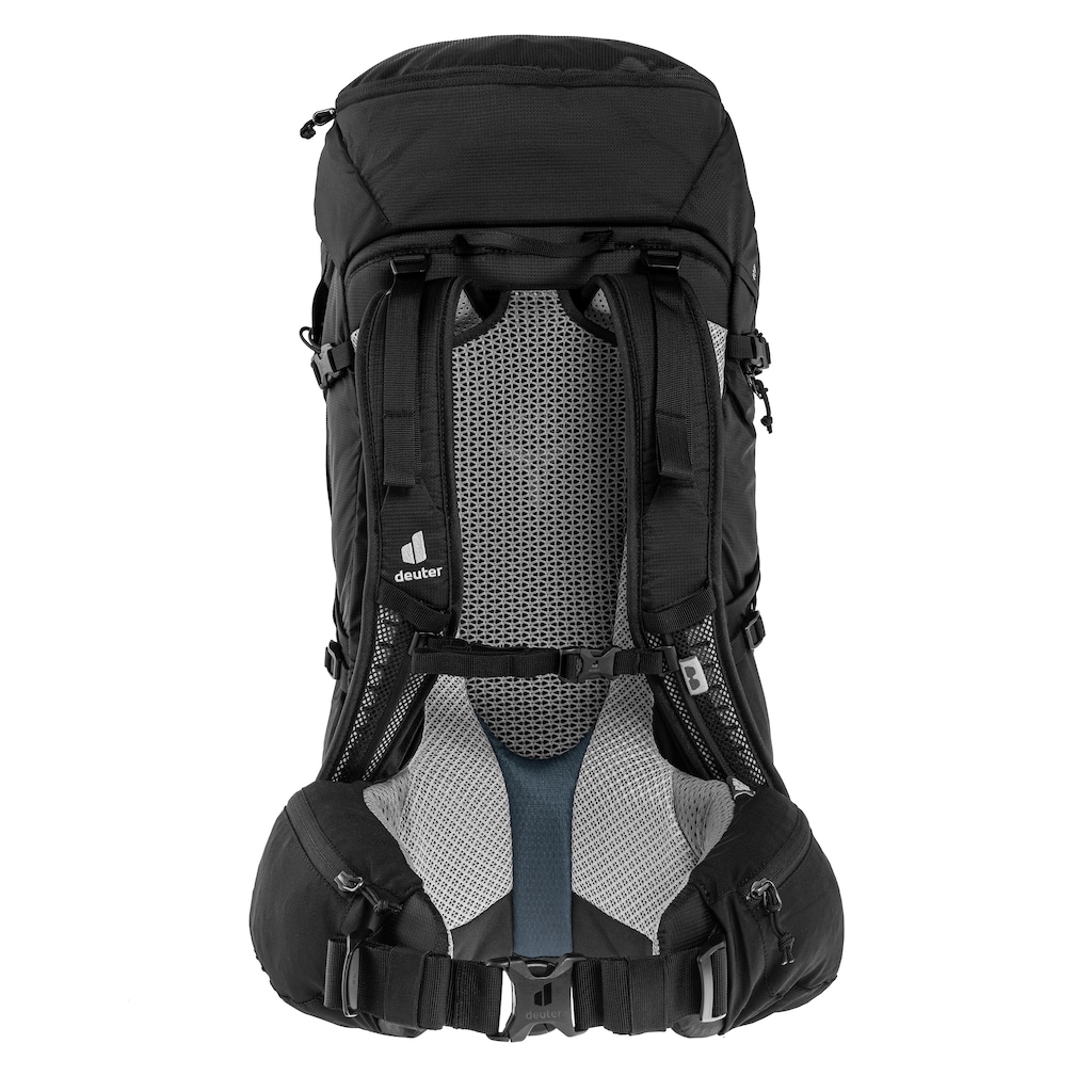 Pas biodrowy Vari Flex jest elastyczny i współpracuje z ciałem podczas ruchu, dodatkowo wyposażono go w kieszenie zamykane na zamek błyskawiczny. Za komfortowe noszenie plecaka odpowiada system nośny Deuter Aircomfort w postaci szelek i pasa biodrowego wypełnionych miękką pianką oraz U-kształtnego stelażu Delrin. Model ma pas piersiowy, którego wysokość i szerokość można regulować w celu dopasowania do indywidualnych potrzeb.