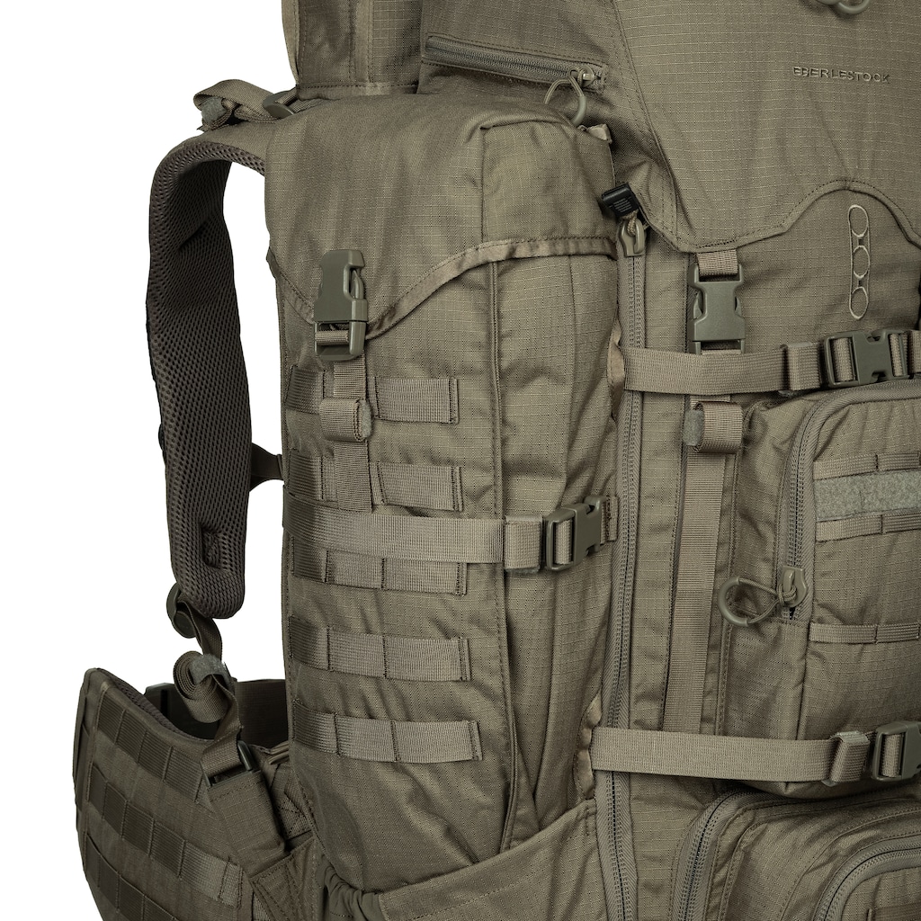 W modelu zastosowano taśmy systemu MOLLE/PALS, które pozwalają na przytroczenie dodatkowego wyposażenia. System pasów kompresyjnychs umożliwia skuteczne skompresowanie plecaka, stabilizację przenoszonego ładunku oraz montaż dodatkowych akcesoriów na zewnątrz. Uzupełnieniem systemu są wytrzymałe pętle montażowe, które pozwalają na przymocowanie większej ilości oporządzenia zgodnie z potrzebami użytkownika.