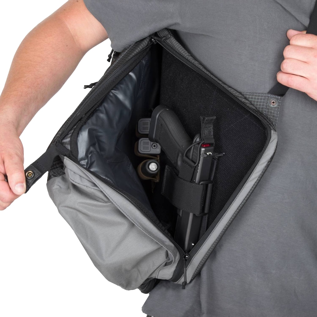 Istotnym elementem jest specjalna komora z szybkim dostępem do przenoszenia broni, zapewniająca wygodę i sprawne działanie w razie potrzeby. System QSA (Quick Side Access) w połączeniu z szybko wypinanymi szelkami pozwala błyskawicznie obrócić plecak na klatkę piersiową lub bok i sięgnąć do wnętrza. Komfort noszenia zwiększają miękkie plecy, poprawiające ergonomię nawet przy dłuższym użytkowaniu. Dodatkowo plecak może pełnić funkcję osłony dzięki kieszeni na wkłady balistyczne.