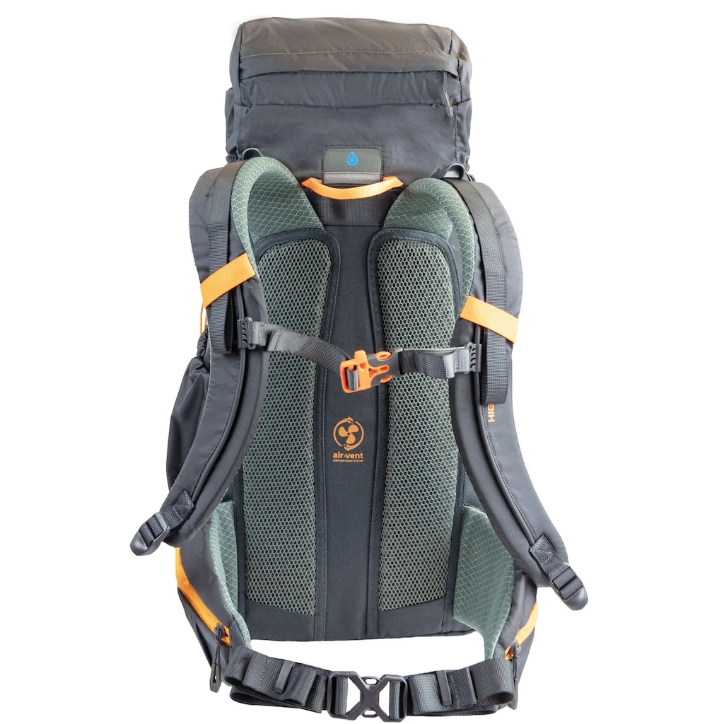 Ergonomicznie wyprofilowanie szelki oraz regulowane pasy (biodrowy i piersiowy) pozwalają na optymalne dopasowanie plecaka do sylwetki i odpowiadają za wysoki komfort podczas wędrówek. System wentylacji Airvent zapewnia optymalną cyrkulację powietrza i sprawne odprowadzanie wilgoci. Na pasie piersiowym umieszczono gwizdek alarmowy, który pozwala na wezwanie pomocy w sytuacji awaryjnej.