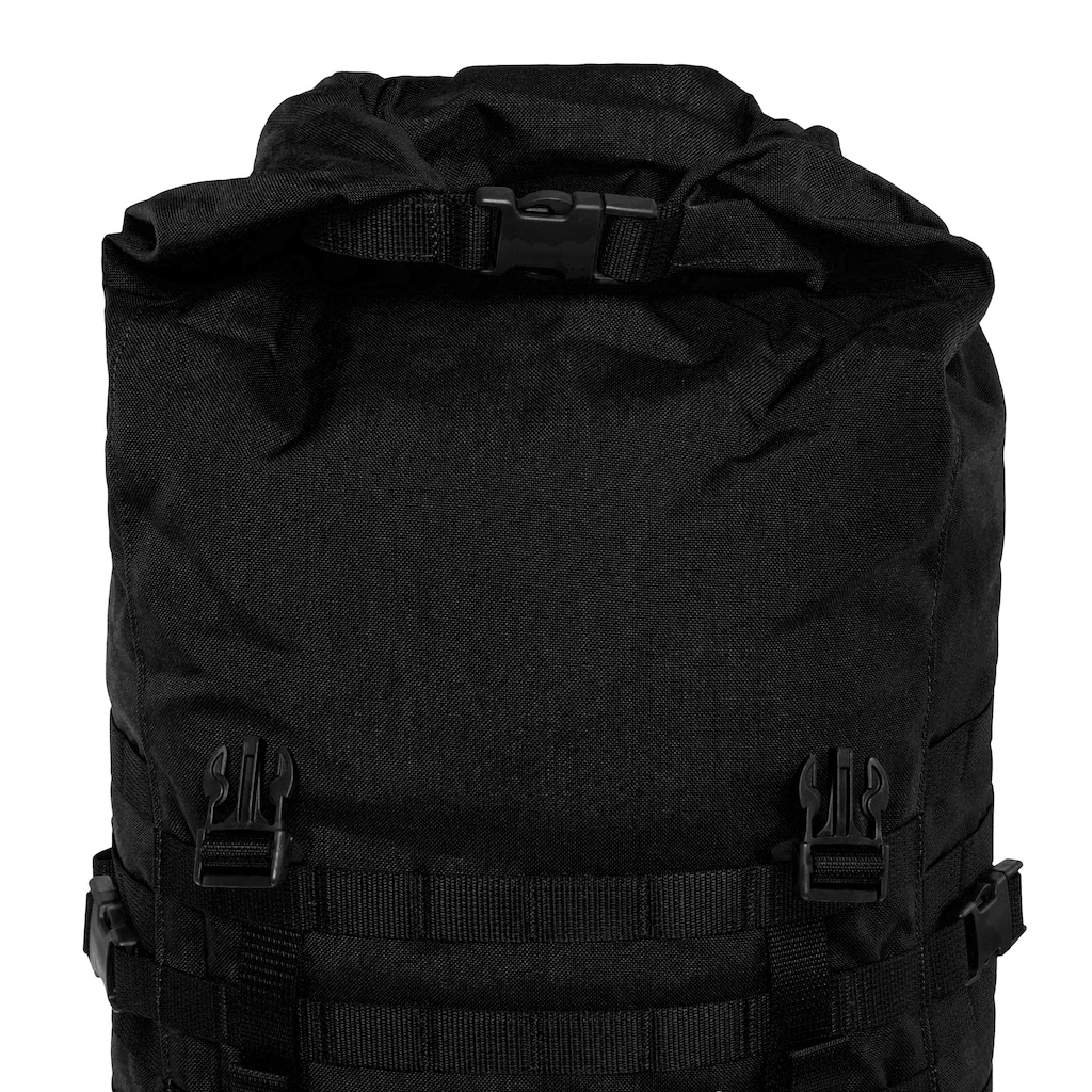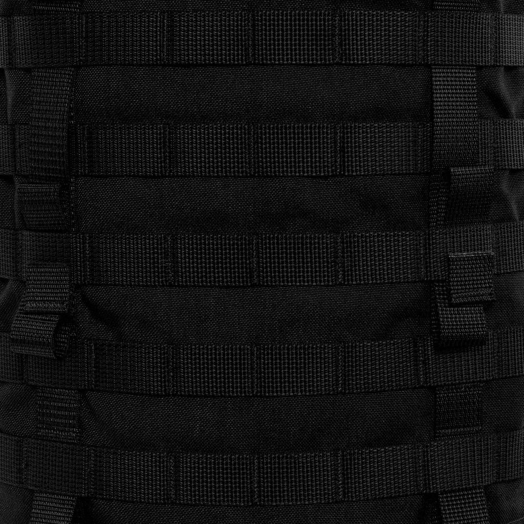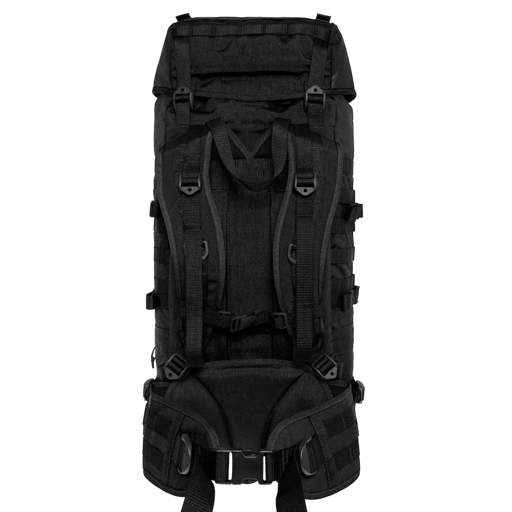 System MOLLE/PALS na bokach, klapie, pasie biodrowym oraz spodzie plecaka umożliwia dołączanie dodatkowych ładownic i sprzętu. Boczne paski kompresyjne pozwalają dopasować objętość plecaka do ładunku lub przymocować dodatkowy ekwipunek na zewnątrz.
