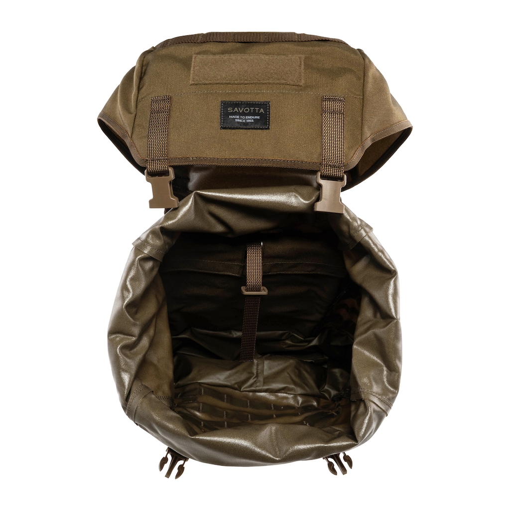 Savotta to fińska, rodzinna marka założona w 1955 roku w Karstula, specjalizująca się w projektowaniu i produkcji plecaków, toreb, namiotów i wyposażenia polowego dla wojska, ratowników i pasjonatów outdooru. Od ponad 65 lat współpracuje z Fińskimi Siłami Zbrojnymi, dostarczając rozwiązania zgodne z wojskowymi normami jakości. Firma stosuje materiały o najwyższej trwałości, takie jak Cordura czy kompozyt Kareline® łączący odporność z ekologicznym podejściem do produkcji. Do autorskich rozwiązań Savotty należą m.in. system szybkiej regulacji Rapid Adjustment Slider, ramy z płyt polietylenowych oraz konstrukcje cięte laserowo w standardzie PALS/MOLLE. Produkcja w 100% odbywa się w Unii Europejskiej, a każdy etap - od projektu 3D po szycie - nadzorowany jest w fińskiej centrali w Karstula.