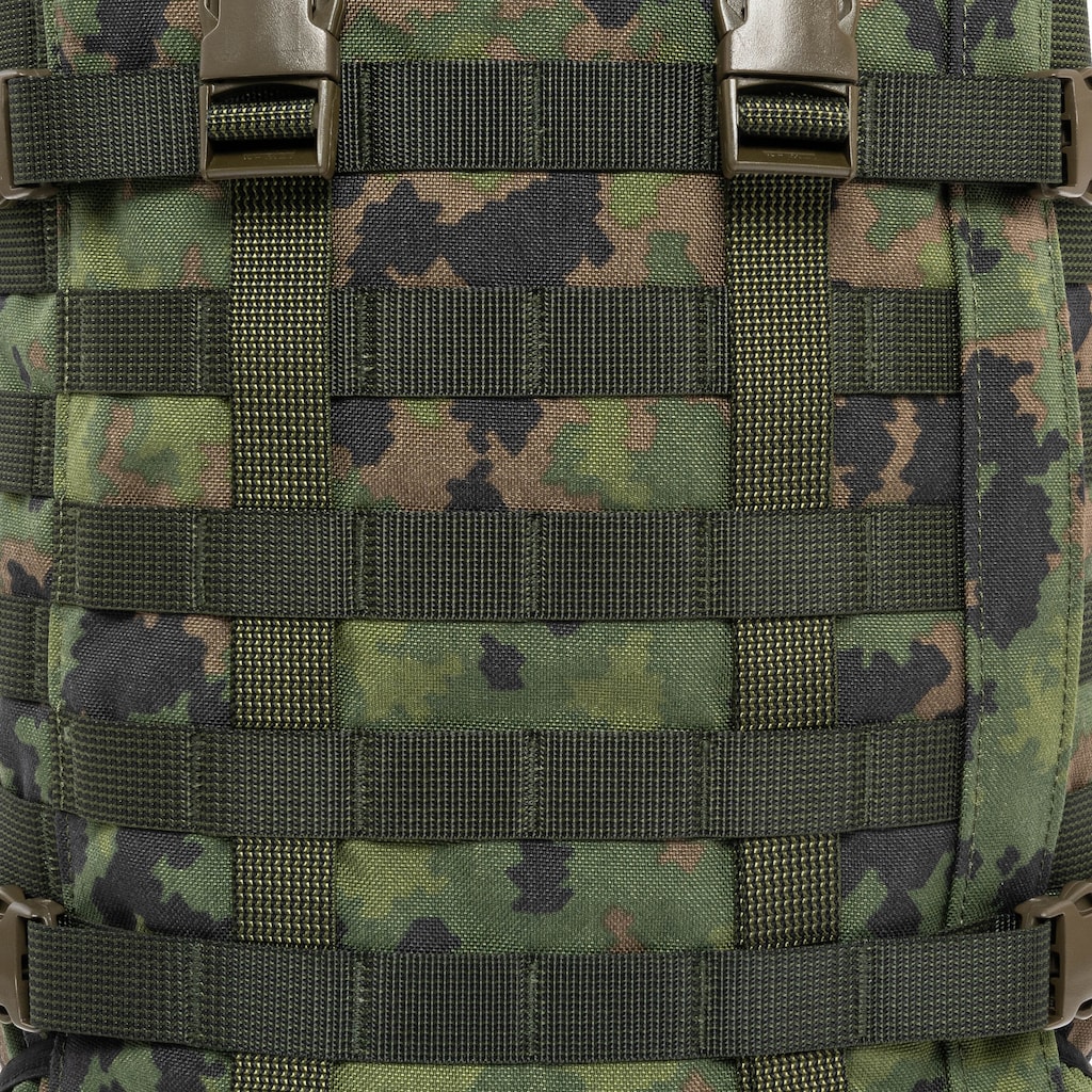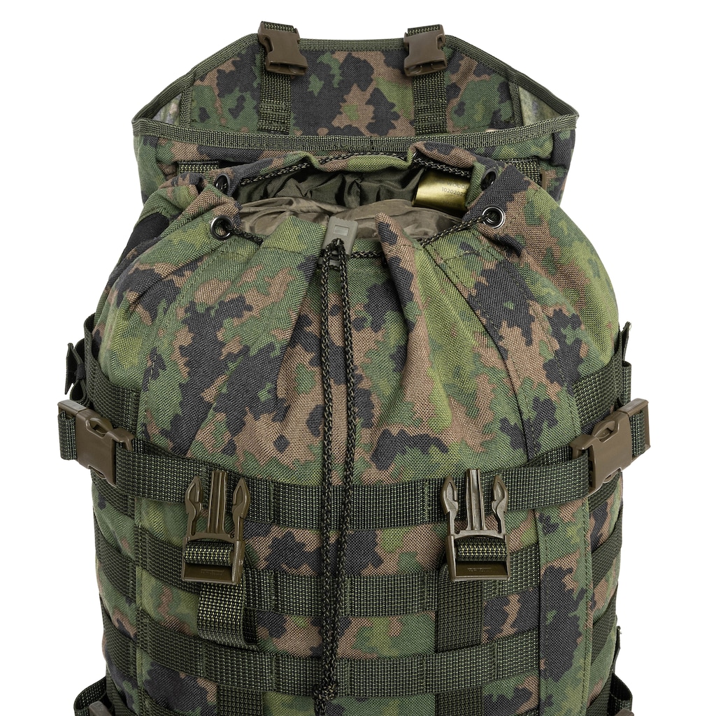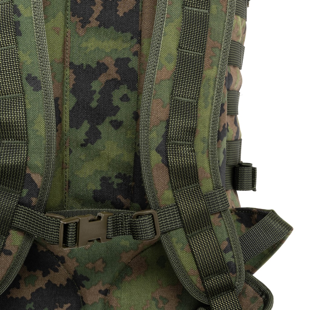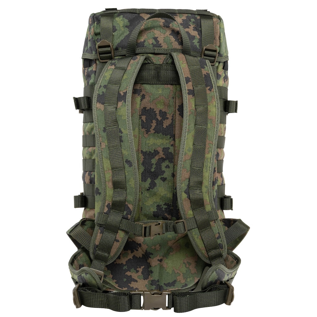 Plecak o pojemności 30 litrów w kamuflażu M05 Woodland, przeznaczony do codziennego użytku, wymagających zastosowań w terenie oraz jako moduł większego ekwipunku. Dzięki smukłej konstrukcji, profilowanym szelkom i wyściełanemu pasowi biodrowemu sprawdzi się podczas dłuższych marszów z cięższym ładunkiem.