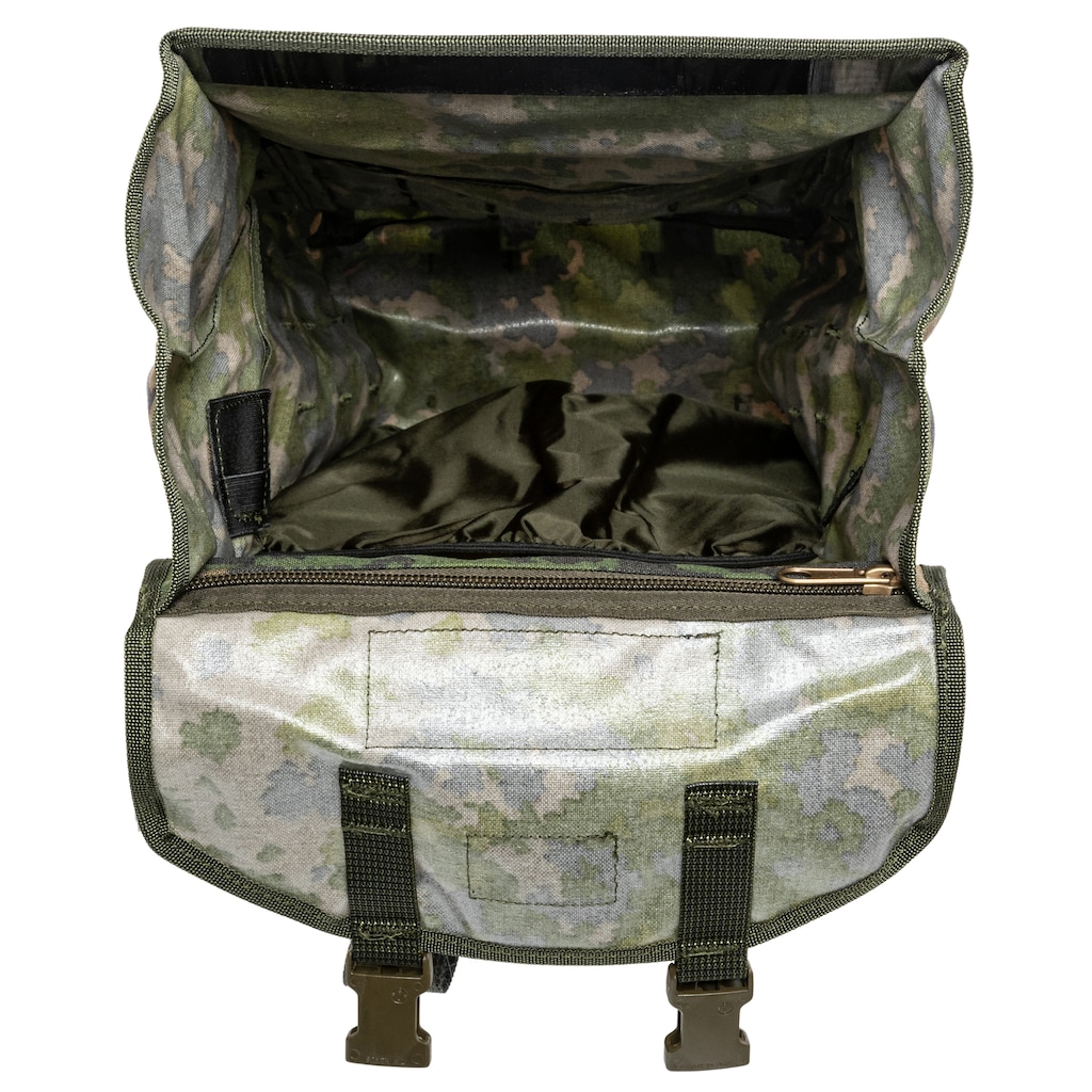 Plecak wyposażono w taśmy zgodne ze standardem MOLLE/PALS, rozmieszczone na bokach i klapie. Umożliwiają one montaż dodatkowych ładownic, zasobników czy sprzętu - również z użyciem karabinków, linek elastycznych czy troków. Cztery pętle na spodzie umożliwiają przytroczenie dodatkowego wyposażenia. Boczne paski kompresyjne pozwalają dopasować objętość plecaka do aktualnego ładunku.