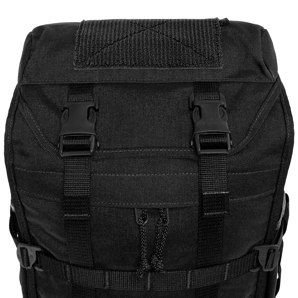 Plecak wojskowy o pojemności 25 litrów w kolorze czarnym. Został wykonany z lekkiej i odpornej na uszkodzenia Cordury 1000D oraz 500D. Model zapewnia kompatybilność z systemem mocowania MOLLE, a jego konstrukcja z szeroką klapą umożliwia szybki i wygodny dostęp do przechowywanej zwartości.