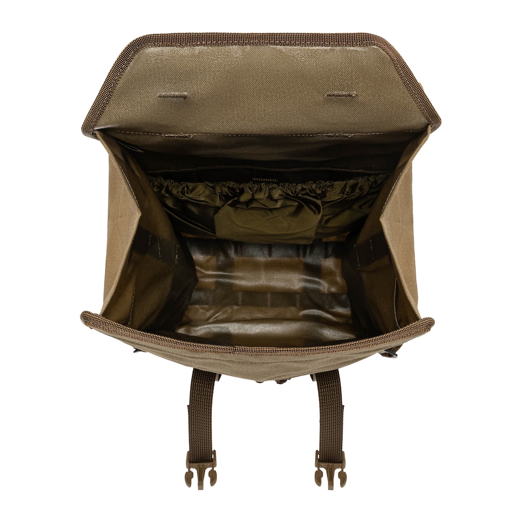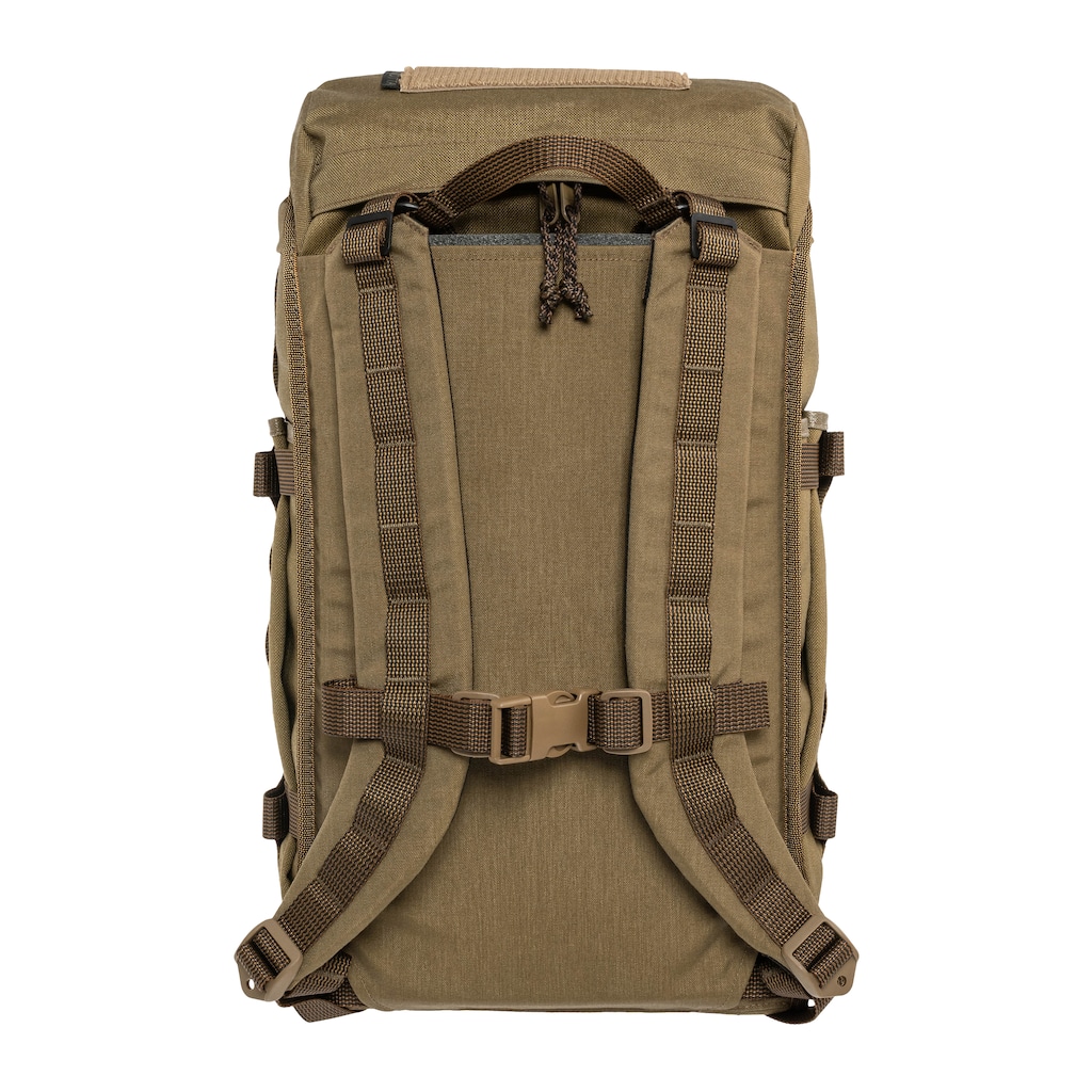 Plecak wojskowy o pojemności 25 litrów w kolorze brązowym. Został wykonany z lekkiej i odpornej na uszkodzenia Cordury 1000D oraz 500D. Model zapewnia kompatybilność z systemem mocowania MOLLE, a jego konstrukcja z szeroką klapą umożliwia szybki i wygodny dostęp do przechowywanej zwartości.