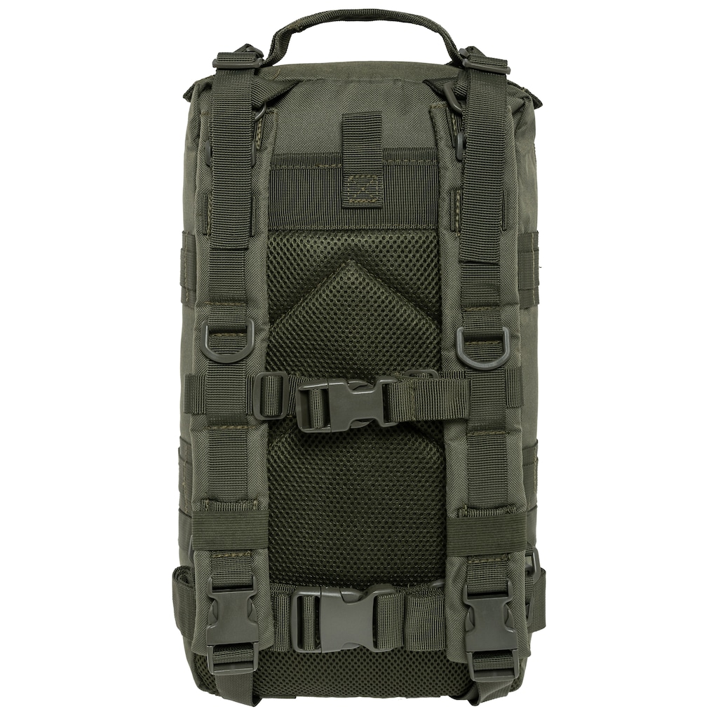 Patrolowy plecak, do którego kieszeni zmieści się wyposażenie niezbędne podczas kilkudniowych działań. Sprawdzi się zarówno do zastosowań turystyczno-survivalowych, jak i do codziennego użytku w mieście. Zastosowany materiał to odporny na rozdzieranie i przecieranie poliester 600D.
