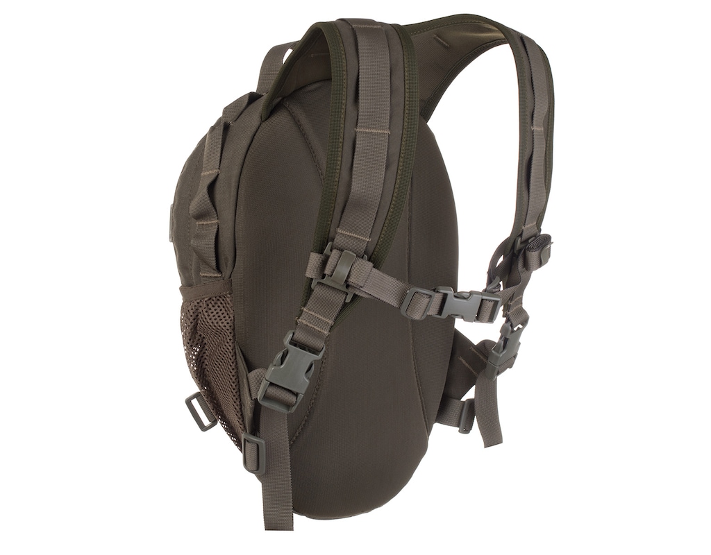 Kompaktowy plecak w kolorze RAL 6003 o pojemności 10 litrów. Wykonany z wytrzymałej Cordury, którą cechuje odporność na rozdarcia, przetarcia oraz działanie czynników atmosferycznych. Świetnie się sprawdza zarówno w codziennym użytkowaniu, jak i podczas krótkich wypadów poza miasto.