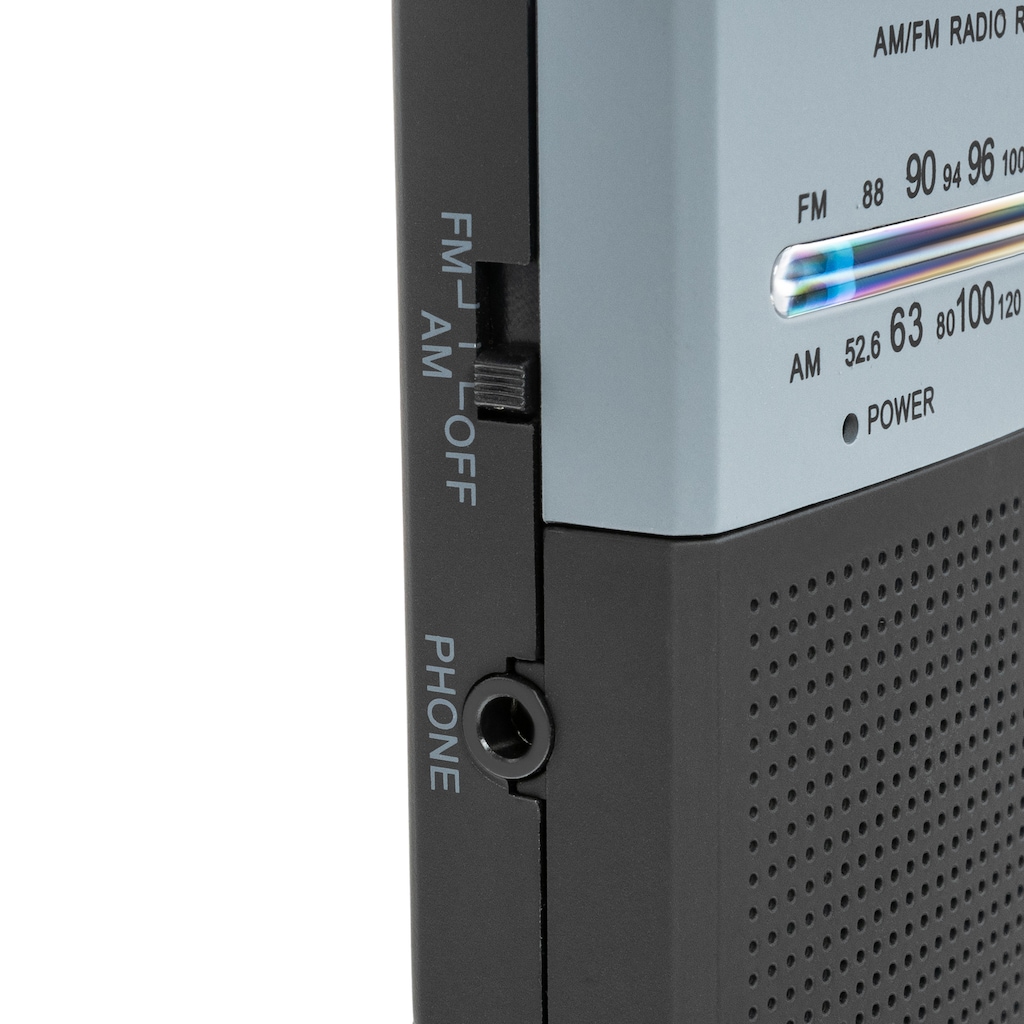Radio zasilane jest za pomocą 2 baterii typu AA. Komora na baterie znajduje się w tylnej części obudowy. Model umożliwia korzystanie ze słuchawek poprzez wbudowane gniazdo minijack. Praktyczny klips umożliwia przypięcie radia do krawędzi kieszeni lub paska.