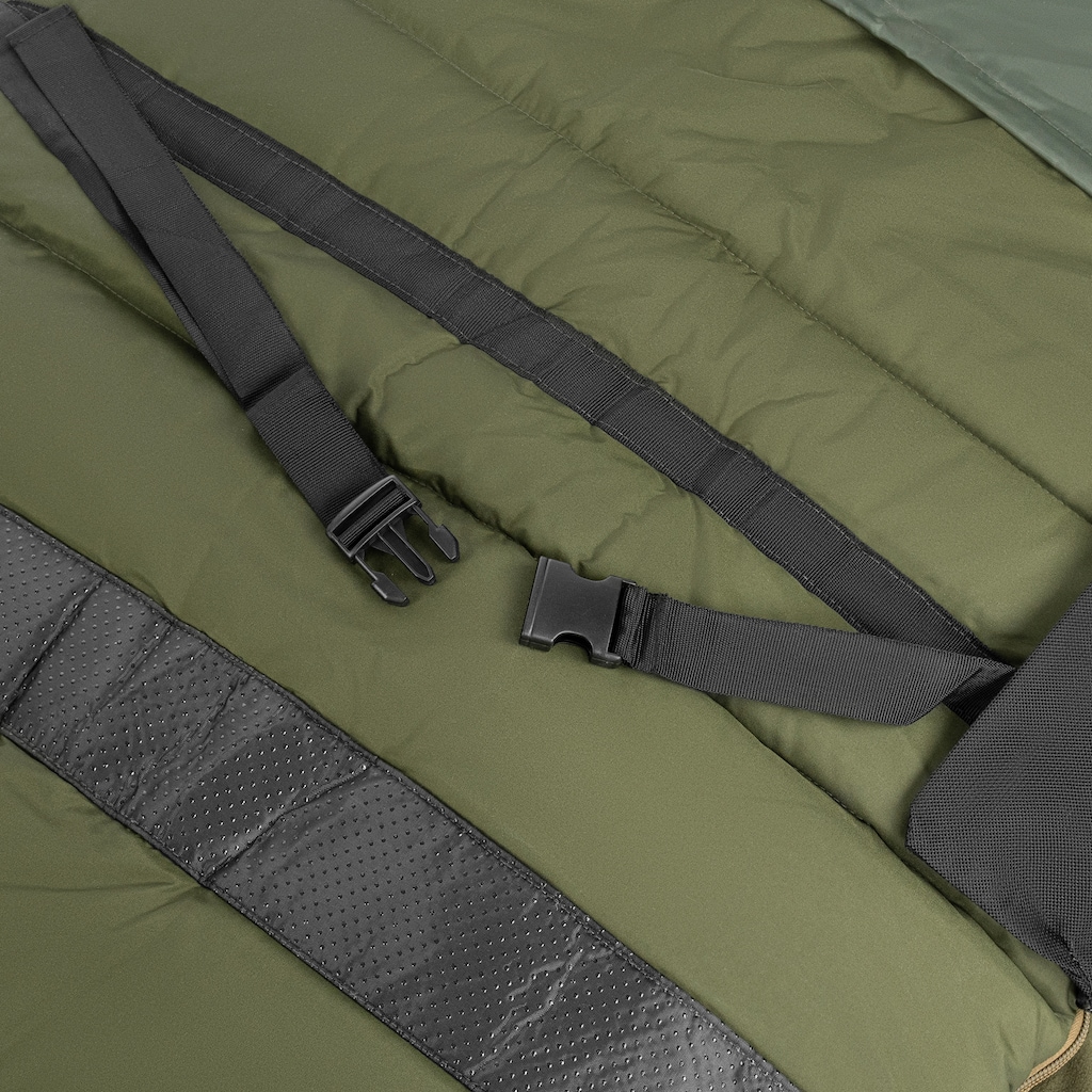 W śpiworze zastosowano pogrubiony zamek błyskawiczny wraz z taśmą zapobiegającą jego przycięciom. Śpiwór został wyposażony w wyjmowaną poduszkę oraz znajdującą się z boku kieszeń na akcesoria wykonaną z przezroczystej siatki. Specjalne elementy mocujące w postaci kołnierzy oraz systemu klamer pozwalają na przytwierdzenie do łóżek turystycznych.