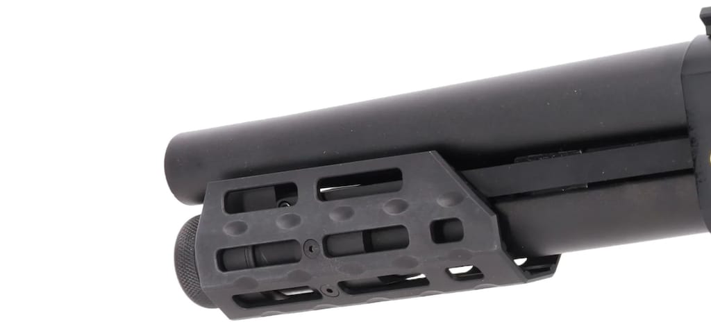 Chwyt przedni jest kompatybilny z systemem M-LOK i umożliwia montaż dodatkowych akcesoriów, takich jak latarka czy wskaźnik laserowy.