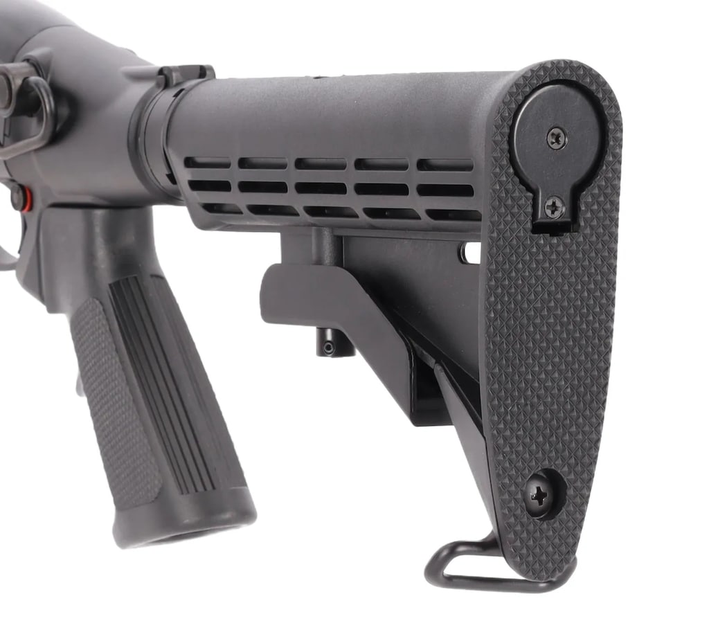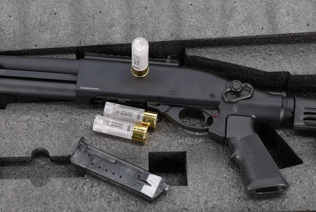 Strzelba działa w systemie Pump-Action, co oznacza, że przed oddaniem każdego strzału należy ją przeładować, odciągając czółenko do tyłu, a następnie do przodu. Odwzorowuje to działanie prawdziwej broni palnej, co zwiększa realizm użytkowania. Na grzbiecie korpusu umieszczono szynę montażową RIS w standardzie 22 mm, co umożliwia zamontowanie kolimatora lub innego celownika optycznego.