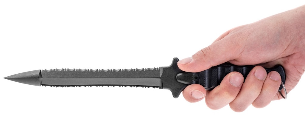 Głownię o profilu Dagger o długości 177 mm i grubości 9,75 mm wykonano z tworzywa Grivory, zawierającego mikrowłókna szklane w nylonowej bazie. Ma ostry czubek oraz ząbkowane krawędzie tnące, które można dodatkowo podostrzyć.