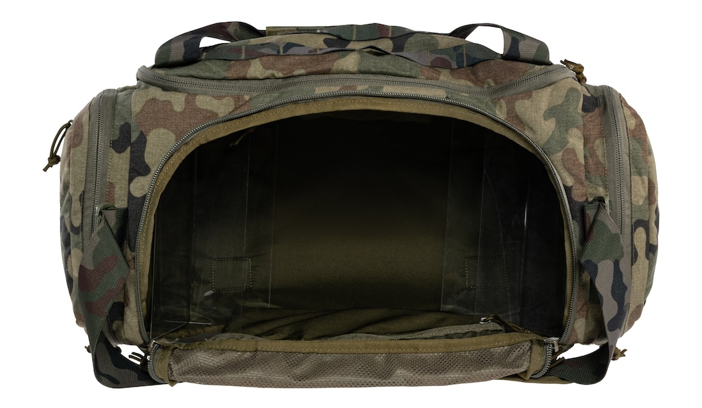 Torba w kamuflażu wz.93 Pantera PL Woodland, wykonana z mocnej Cordury. Dzięki pojemności 50 litrów umożliwia spakowanie niezbędnych rzeczy na dłuższe wypady, wyjazdy czy weekendowe wycieczki, oferując dużą przestronność przy jednoczesnym zachowaniu kompaktowych rozmiarów.