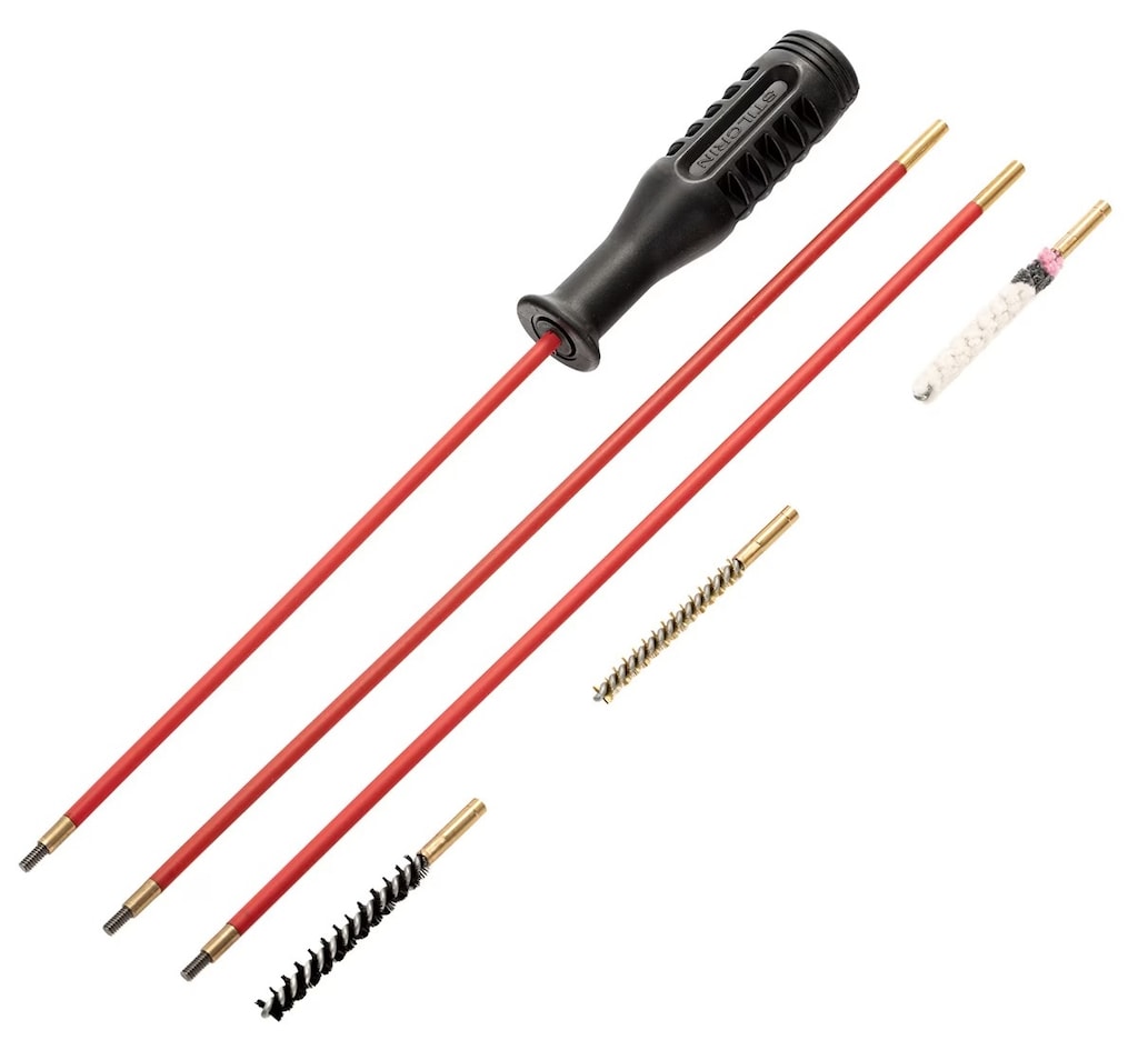 Zestaw do czyszczenia luf o kalibrze 4,5 mm składający się z trzyczęściowego pręta wykonanego ze stali powleczonej tworzywem, trzech końcówek oraz smaru do czyszczenia i konserwacji broni.