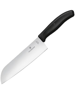 Кухонні ножі Santoku - це своєрідна комбінація японського кухарського ножа і невеликого тесака. Ніж Сантоку має специфічну форму леза, яка впізнається з першого погляду. Ножі Сантоку дуже добре підходять для шинкування та нарізання овочів і фруктів. Вони також підходять для нарізки та оброблення м'яса без кісток. Доступні у нас ножі Santoku мають довжину леза від 14 см до 18 см. Кухонні ножі Santoku, доступні в цій категорії, оцінять як професійні кухарі, так і аматори. Особливо рекомендуємо їх любителям веганської та вегетаріанської кухні. Вони стануть у нагоді як ріжучий інструмент у будь-якому домі, а не лише для любителів азійської кухні, звідки вони походять. Японська точність і відмінна якість виготовлення гарантують, що ніж залишається гострим протягом тривалого часу. Ріжучі властивості та форма леза чудово підійдуть для повсякденних завдань, таких як порціонування їжі та приготування страв. Він ідеально підходить для приготування тушкованого м'яса та рибних страв. Відносно коротка ручка кухонних ножів Сантоку ідеально підходить для тих, у кого маленькі руки, тому це чудовий вибір для жінок.Також доступні спеціальні ножі Сантоку Granton. Вони мають канавки на лезі, які запобігають прилипанню їжі, особливо м'яса, і дозволяють їй вільно ковзати по лезу. Система Granton відома з першої половини двадцятого століття і в основному використовується у великих кухарських ножах. Для виробництва цього типу інструментів потрібен великий металургійний досвід з боку виробника та використання спеціалізованого обладнання у виробничому процесі. Кухарські ножі Santoku надзвичайно зручні, завдяки чому ними дуже комфортно різати. Незважаючи на коротку довжину леза, вони відкривають широкі можливості і є чудовим доповненням до нашого кухонного набору. Сьогодні вони виготовляються з використанням новітніх технологій в матеріалознавстві, дизайні та виробництві, зберігаючи при цьому традиційну форму. Кожен з пропонованих ножів ідеально відображає дух Японії і дозволяє зануритися в атмосферу країни самураїв. Вони ідеально підходять в якості подарунка на особливу подію для близької людини. Хороший, гострий і універсальний кухонний ніж - необхідна річ на кожній кухні. На особливу увагу заслуговують ножі всесвітньо відомого і шанованого бренду Boker. Ця німецька мануфактура зі штаб-квартирою в Золінгені веде свою історію з 1869 р. Варто згадати, що бренд першим представив лінійку керамічних ножів. Boker відомий тим, що виробляє високоякісні традиційні ножі та сучасні ріжучі інструменти, виготовлені за технологіями XXI століття. Широкий асортимент ножів цього виробника доступний також в інших категоріях на Militaria.pl. Кухонні ножі Santoku від Boker характеризуються високою якістю виготовлення за розумною ціною. Вони ідеально підходять для ресторанної індустрії як професійні ножі для шеф-кухаря. У цій категорії ви також знайдете швейцарські ножі від бренду Victorinox, відомого в першу чергу завдяки виробництву кишенькових ножів. Це компанія з історією, що починається з 1884 року, яка базується в місті Ібах і відома на всіх континентах. Їхню продукцію можна знайти навіть на МКС (Міжнародній космічній станції). Відмінна швейцарська якість і вишукані властивості нержавіючої сталі, з якої виготовляються ножі Victorinox, гарантують користувачеві тривале збереження гостроти і високу с