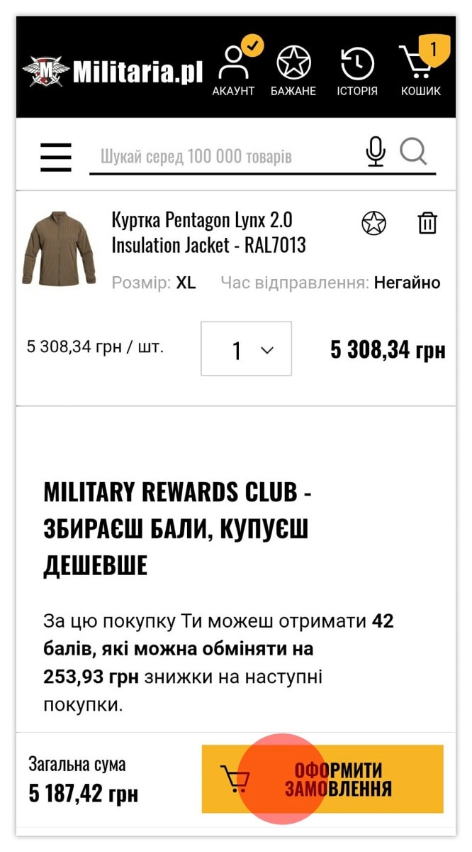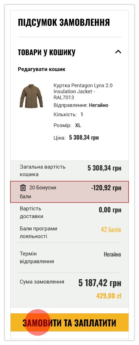- Перевір підсумок замовлення У нижній частині підсумку Ти побачиш: