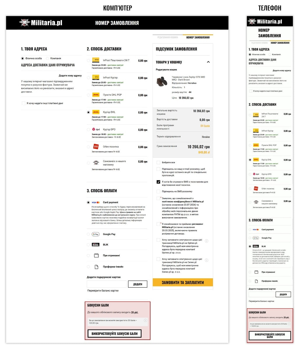 - використання балів програми лояльності